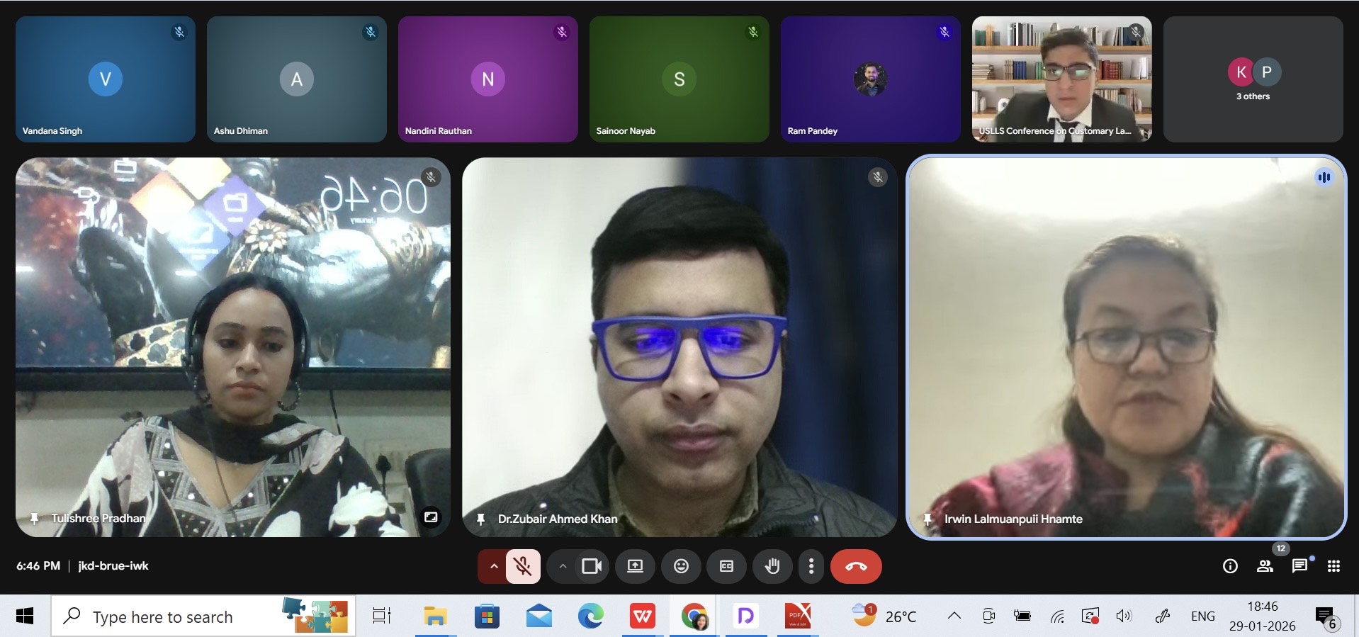 Dr. Tulishree Pradhan, Associate Professor, KIIT School of Law, KIIT Deemed to be University, was honoured to serve as Co-Chair for the Online Technical Session–IV at the National Conference on Customary Laws and Customary Rights, hosted by University School of Law and Legal Studies (USLLS), Guru Gobind Singh Indraprastha University, Dwarka, on 29 January 2026.