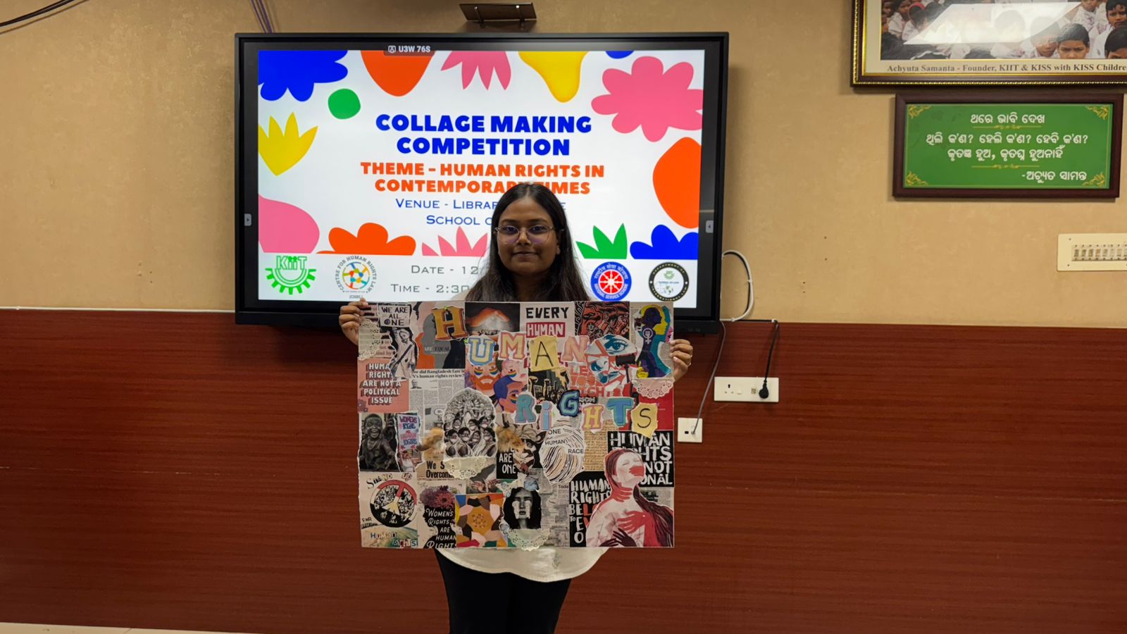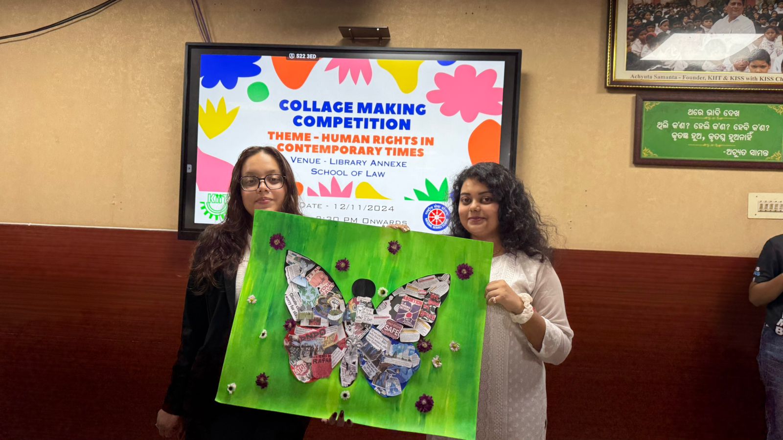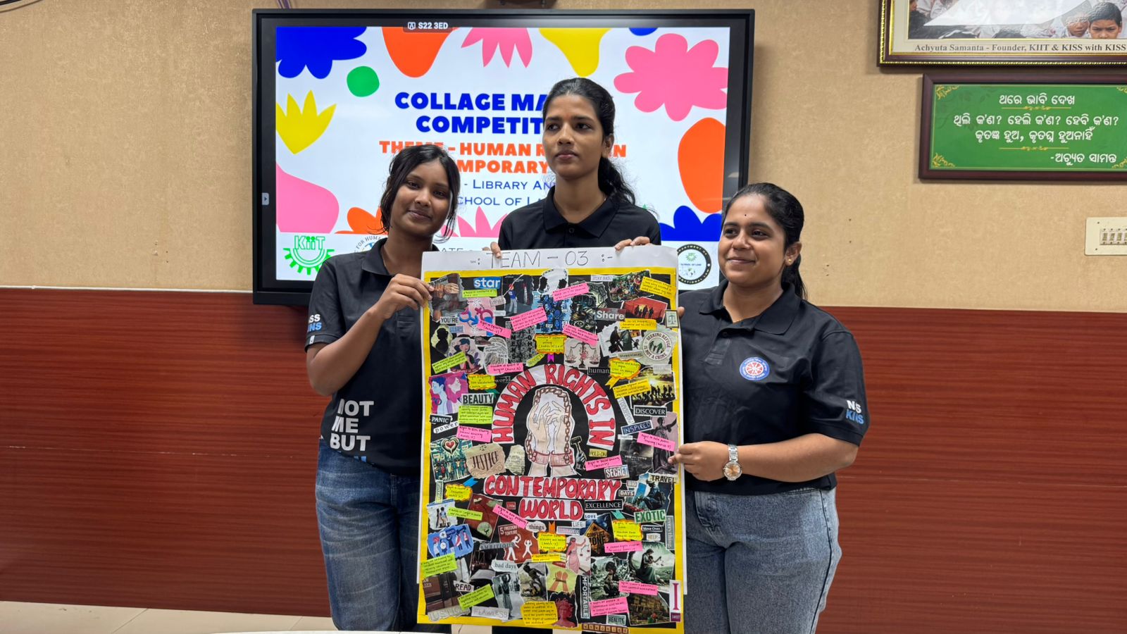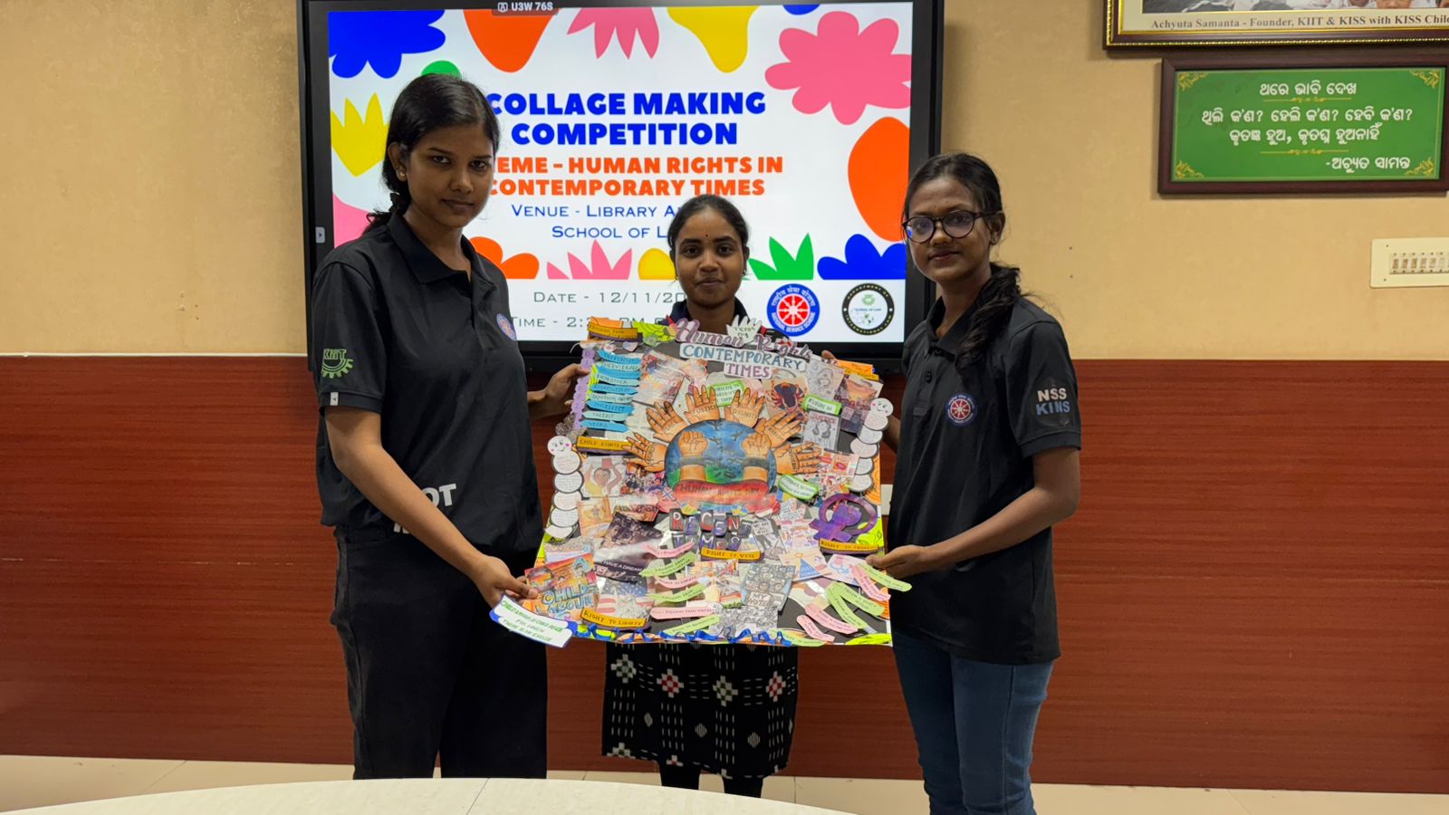 The Collage Making Competition which was organized by the CENTRE FOR HUMAN RIGHTS, KIIT SCHOOL OF LAW in collaboration with NSS, on the theme "Human Rights in Contemporary Times" was held on 12 November 2024 at the Library Annexe, KIIT School of Law. The event commenced at 2:15 PM with members arriving and preparing for the competition. The competition officially began with ten teams showcasing their creative interpretations of the theme. The judges for the competition were Prof. (Dr.) Rajan Varghese, Ms. Tulip Suman, and Dr. Tulishree Pradhan.