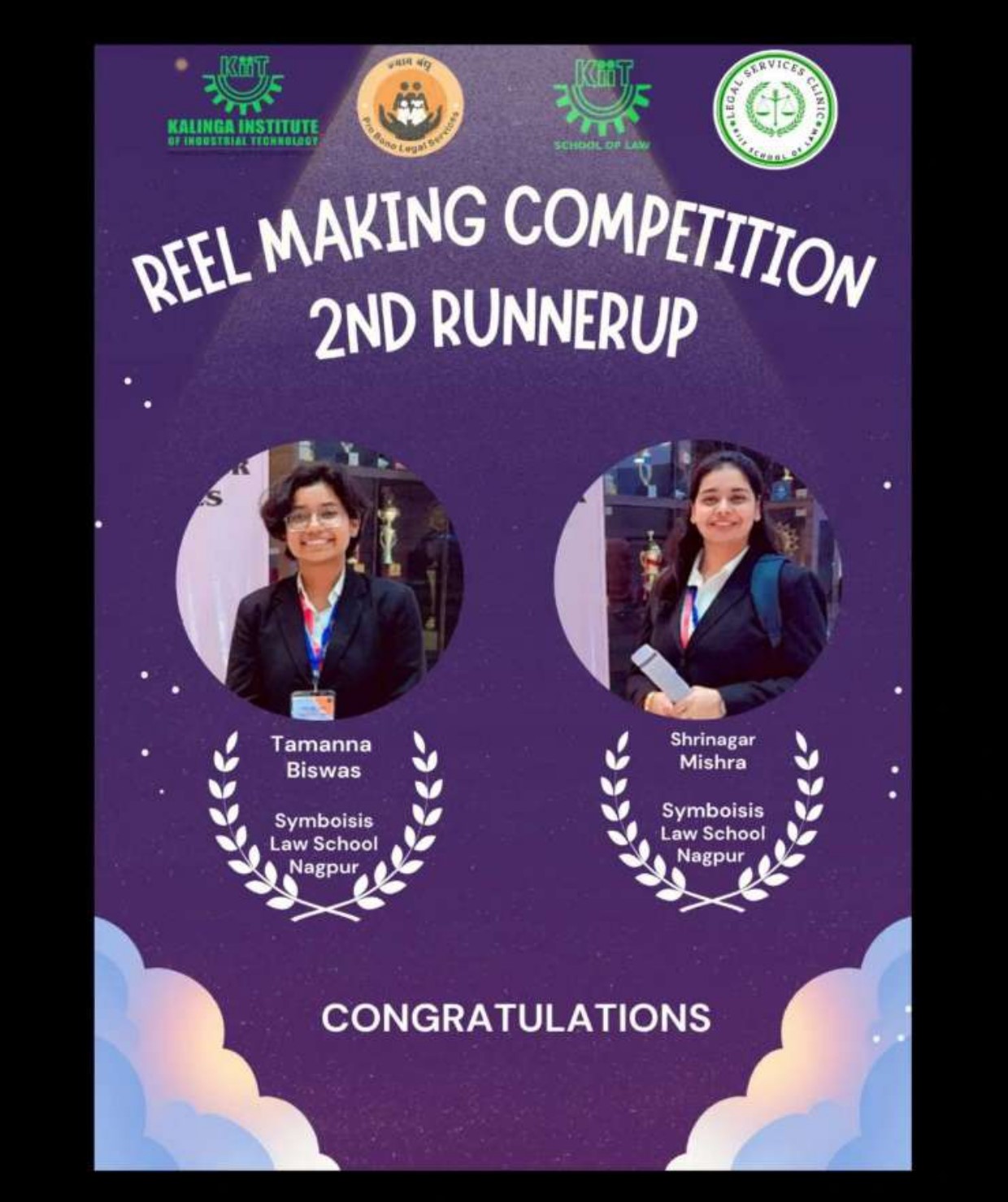 We are thrilled to announce the winners of the inaugural KIIT Law School National Reel Making Competition!