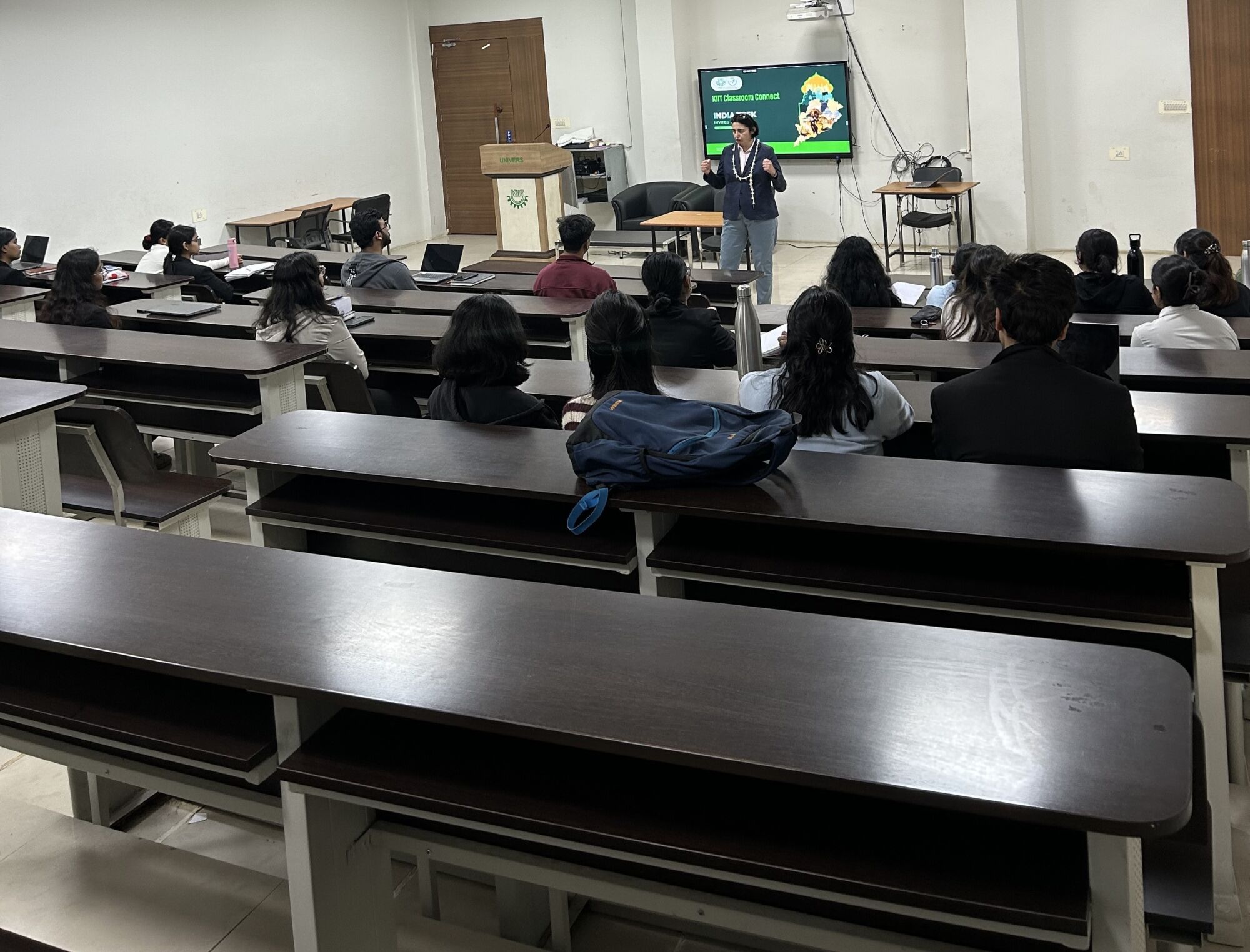 On 7 January, KIIT School of Law had the privilege of hosting distinguished foreign delegates under the India Trek Programme at KIIT University. The academic session was led by Ms. Carla Erskine, Attorney – Real Estate & Global Sourcing, Expeditors International of Washington Inc., and Ms. Katarina Nedeljković, Advisor to the Director General, Council of Europe.