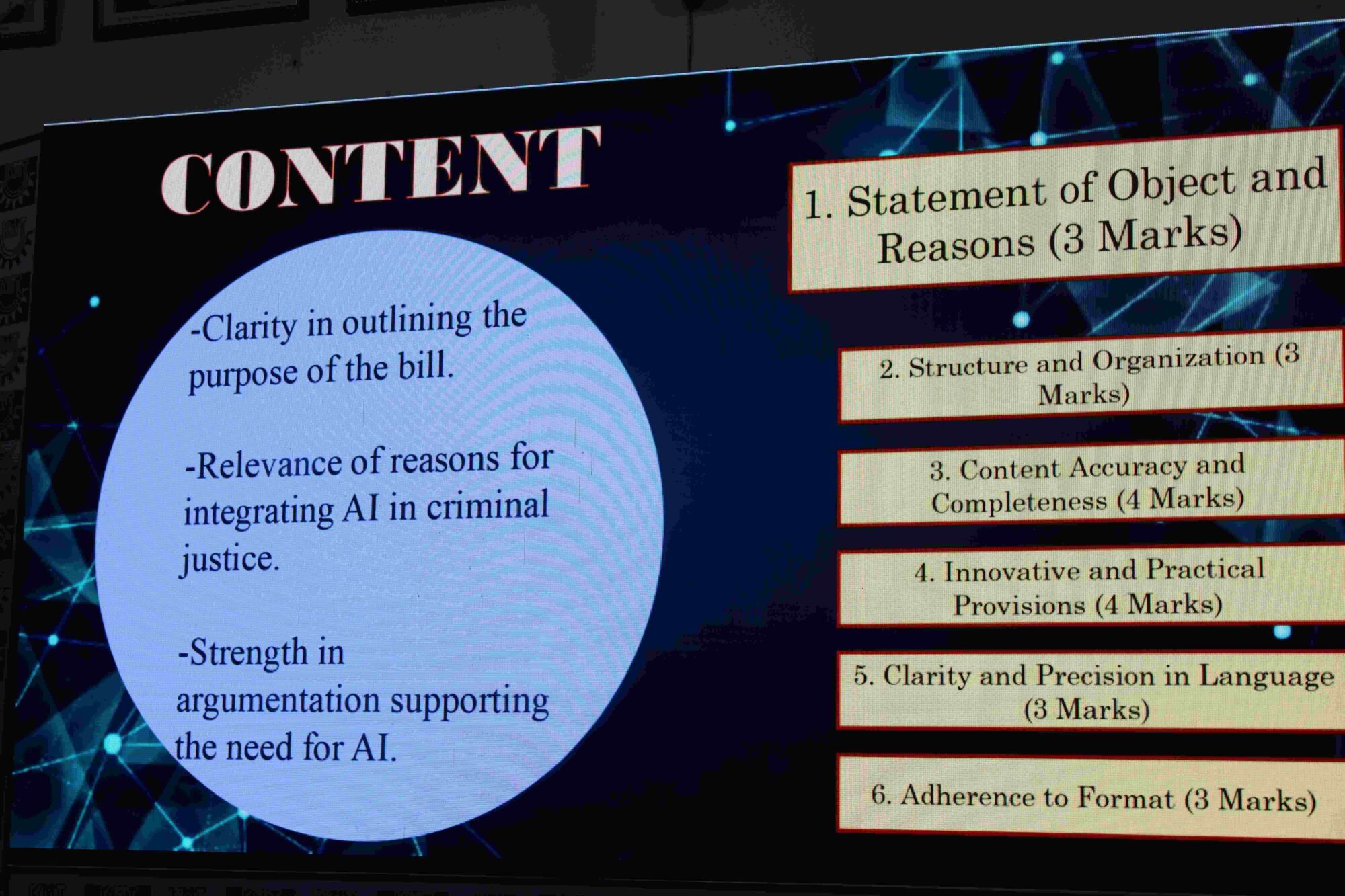 The Centre for Studies and Research in Legislative Drafting conducted its very first offline Legislative Drafting Competition on the 13 th of November, 2024. The students were asked to write a draft on “The Application of Artificial Intelligence in Criminal Law Bill of 2024”. The event was a great success with a turnover of 65 participants who were very enthusiastic for the event and worked diligently on their drafts. Under the guidance of our new faculty convenor Dr. Hiranmaya Nanda and faculty co-convenor Mr. Priyadarshi Jha, the core team of CSRLD with their Convenor Swapnakalpa Datta and Co-convenor Ramyani Bhattacharya took the initiative to conduct this one in a kind event to encourage the students of KIIT Law School to take interest in this niche area of law which is of utmost importance in the Indian Legal System.